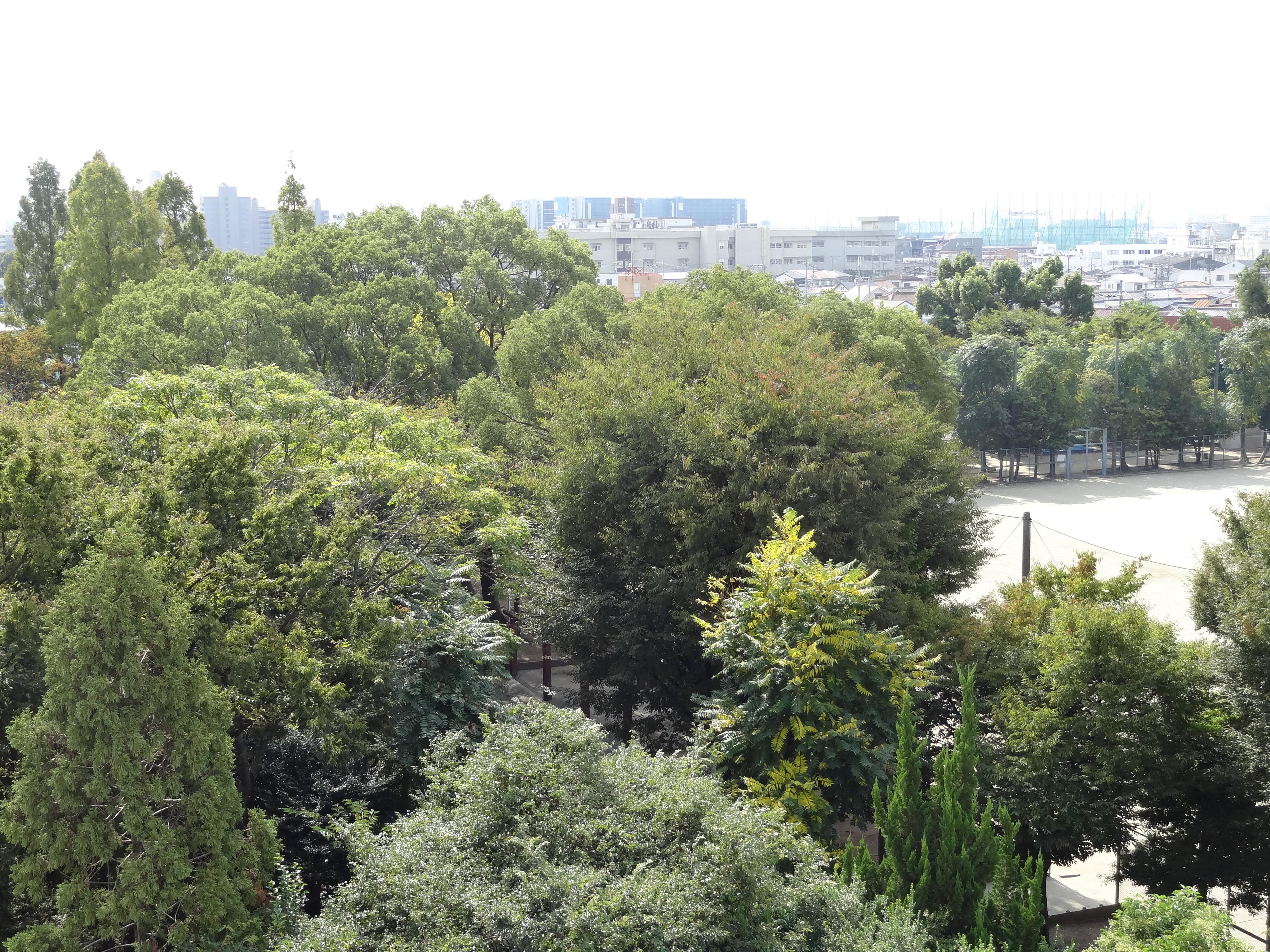 | 内容・説明 | 現在の菰江(こもえ)公園になってから40年ほど経過しました。 木々が生い茂り、千成小学校の校舎も上部しかみえなくなりました。 |