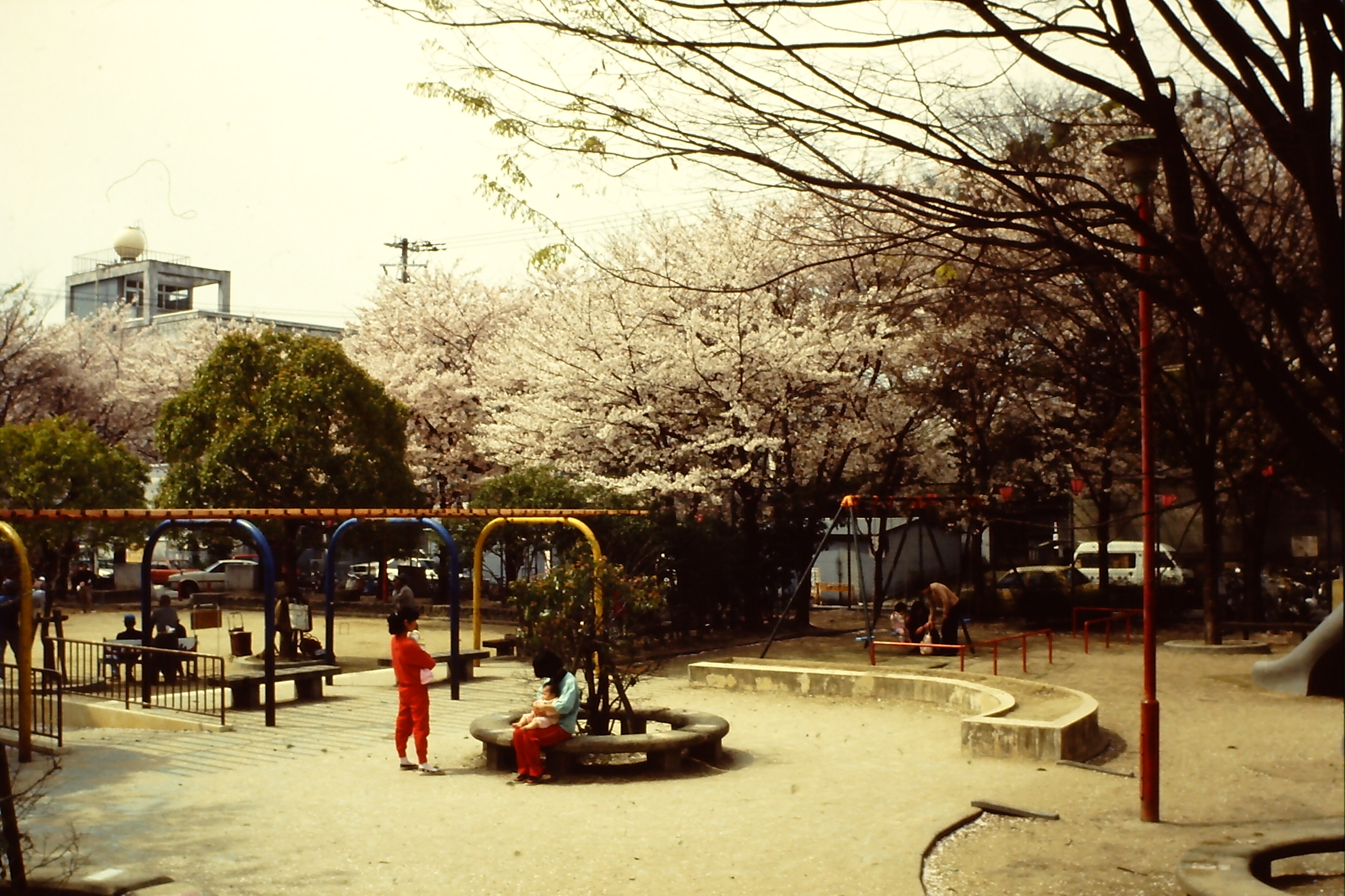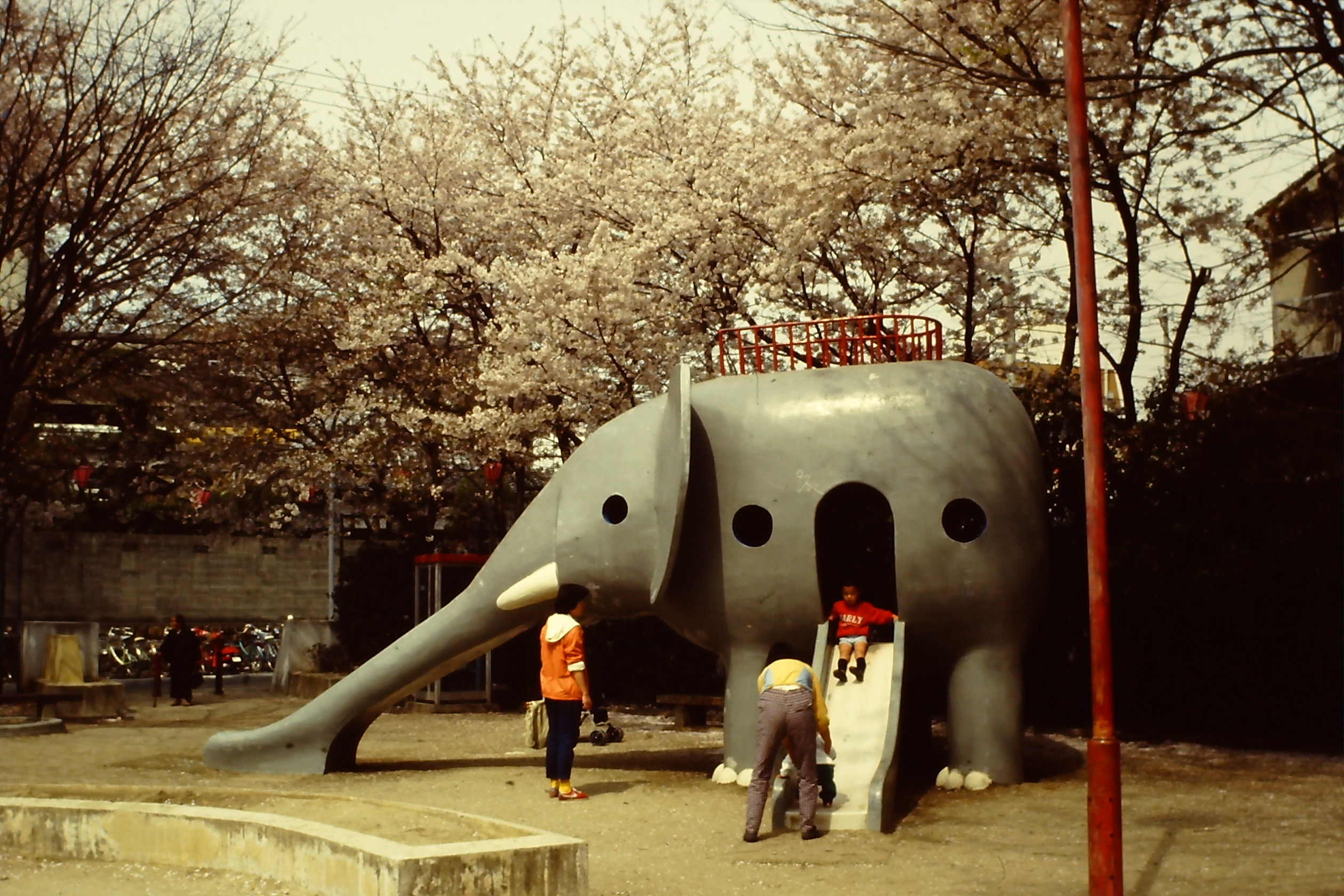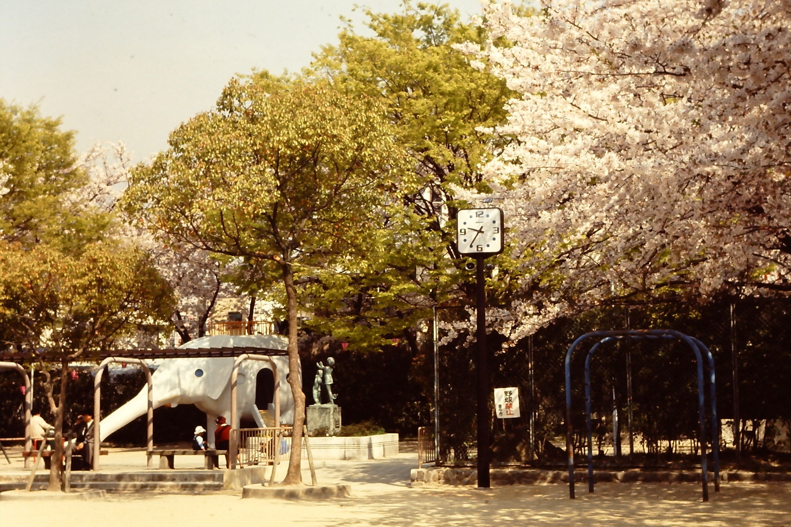 | 内容・説明 | この写真の公園はおそらく1990年代はじめに撮影された桜の名所としても有名な桜塚公園です。ゾウのすべり台があり「ゾウ公園」の名で親しまれています。公園一面が桜に包まれる4月には、“桜まつり”が開催されます。この季節ぜひ足をお運びください。 |