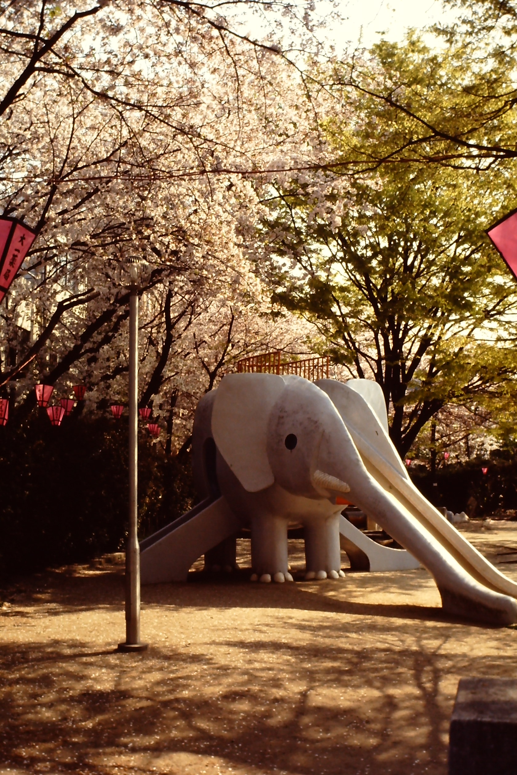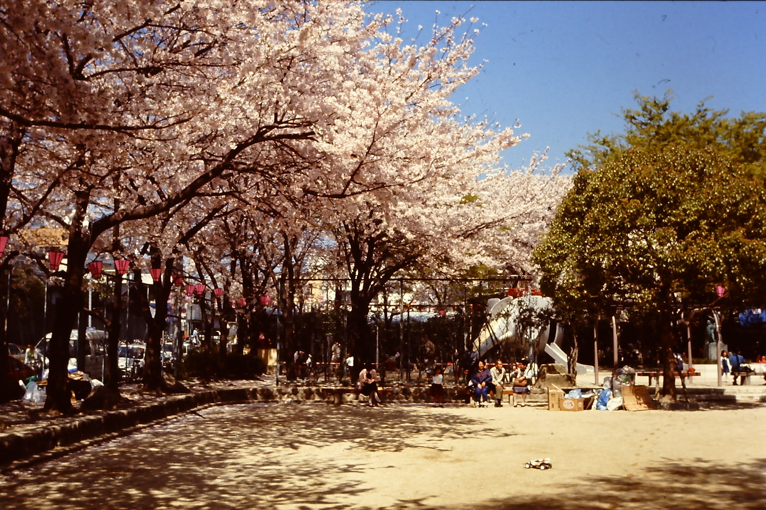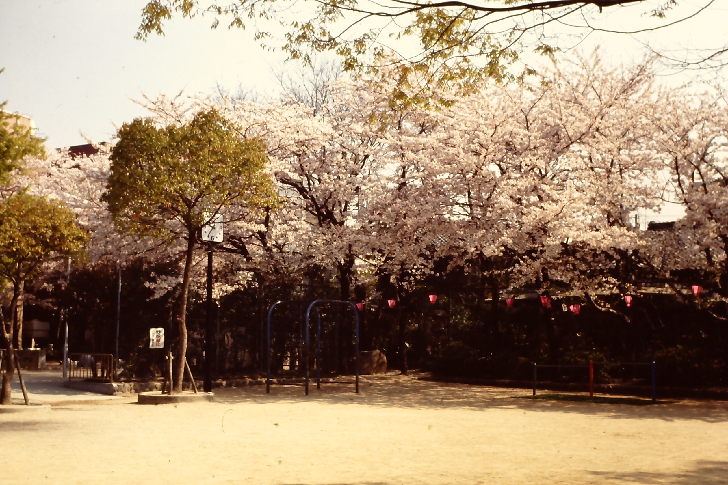 | 内容・説明 | この写真の公園はおそらく1990年代はじめに撮影された桜の名所としても有名な桜塚公園です。ゾウのすべり台があり「ゾウ公園」の名で親しまれています。公園一面が桜に包まれる4月には、“桜まつり”が開催されます。この季節ぜひ足をお運びください。 |