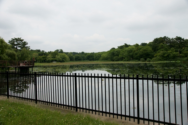 服部緑地内にある自然豊かな大きな池。一時は白鳥も飼育されていた。昭和31(1956)年から始まった貸しボートは、2人乗りの手こぎボートのほか、白鳥の形の足こぎボートなどがあり、利用者に親しまれたが、平成15(2003)年3月に廃止された。(作成者:C130)