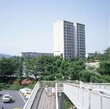 佐竹台公社住宅から南千里駅越しに竹見台の公団スターハウス方面を望む。緑も増えて町に落ち着きが出てきた頃。