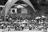 ハワイ移民100年記念として北公園プールで行われた「サウンド・オブ・ヤング・ハワイアン」。ずいぶん派手なアーチが立っている。