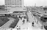 北大阪急行桃山台駅(東側)で、道端に机を出して臨時の切符売り場にしている。背後は公団C20棟。ニュータウンでは珍しい市街地住宅のタイプ。右向こうは新千里南町三丁目になるが、まだ工事現場という感じ。