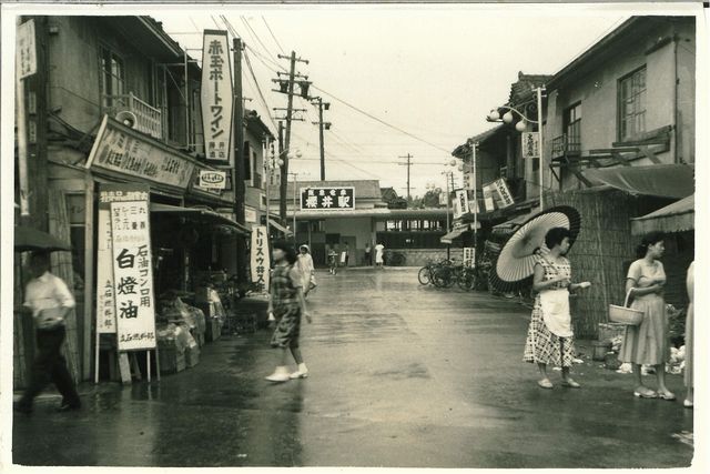 | 内容・説明 | 昭和30年(1955年)頃の阪急桜井駅前の風景です。「赤玉ポートワイン」「トリスウ井スキー」「石油コンロ用白燈油」の看板が、また雨の中、買い物中の蛇の目傘を差すお母さんが時代を感じさせます。 |