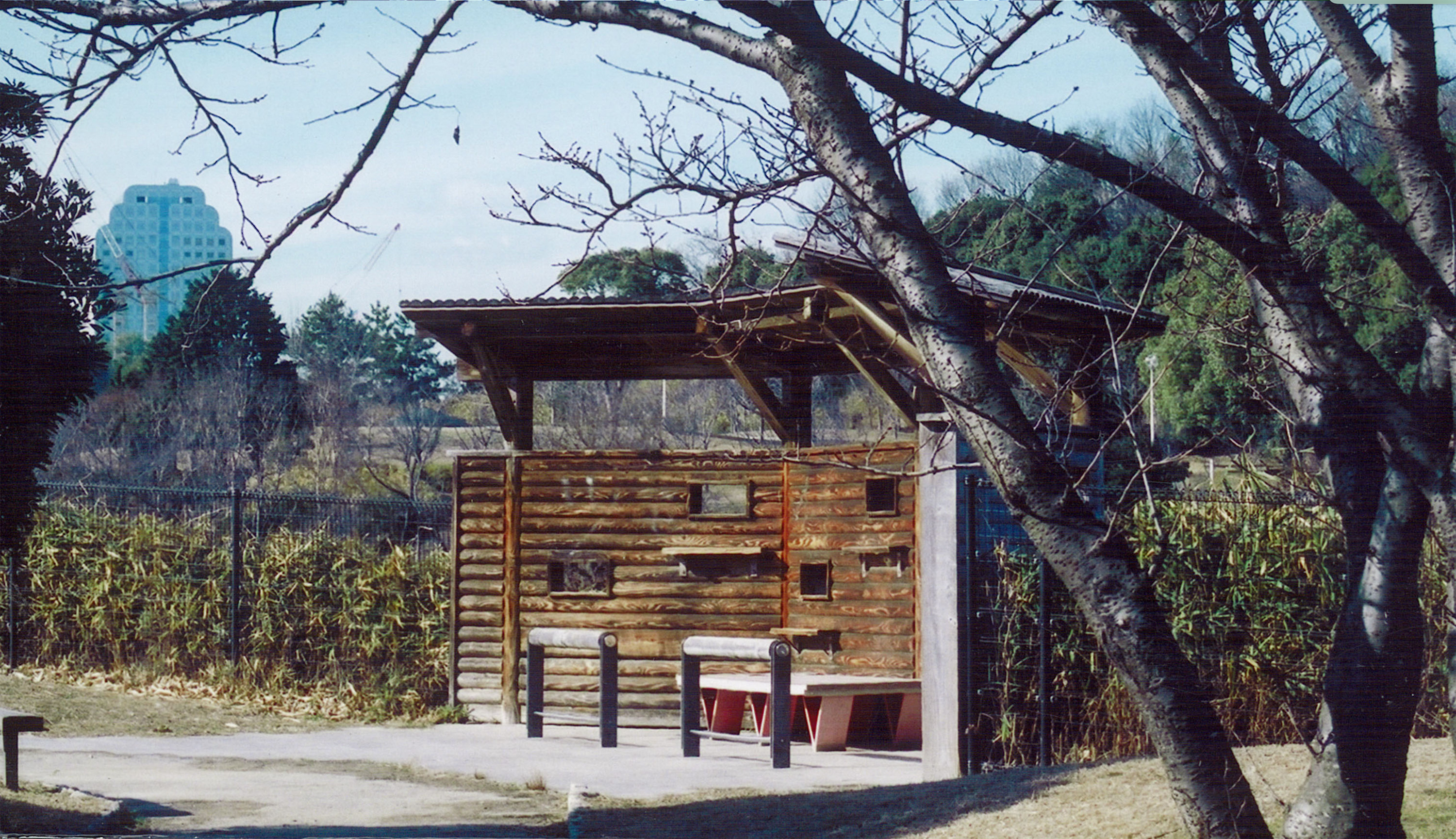 | 内容・説明 | 千里中央公園・安場池の野鳥観察小屋。左向こうに千里ライフサイエンスセンタービルが見えている。 |