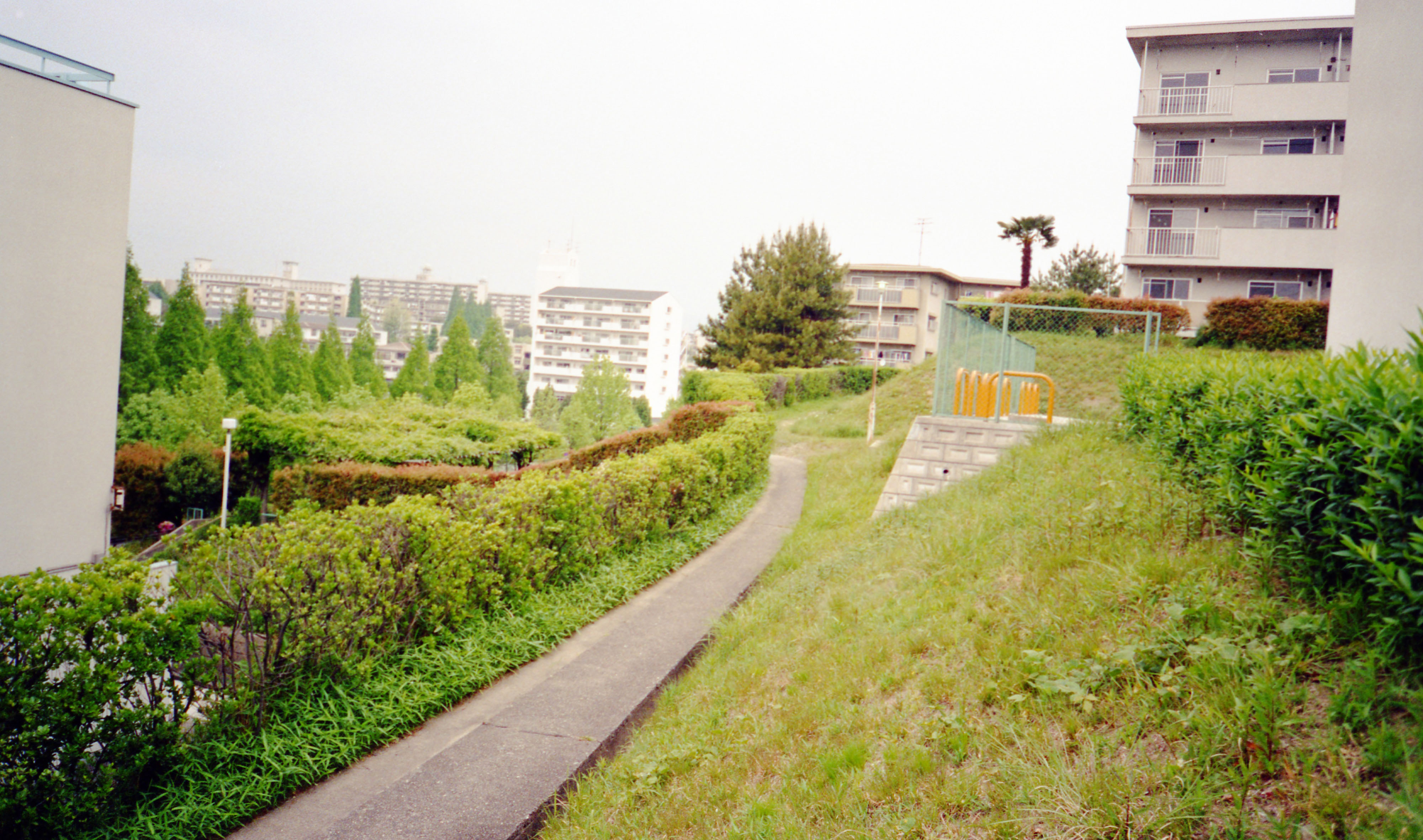 | 内容・説明 | 佐竹台五丁目、NTT社宅群内の斜面から北西方向を望む。佐竹公園のメタセコイア並木、近隣センター内のルワーブル南千里、スターハウスD2棟などが見える。 |