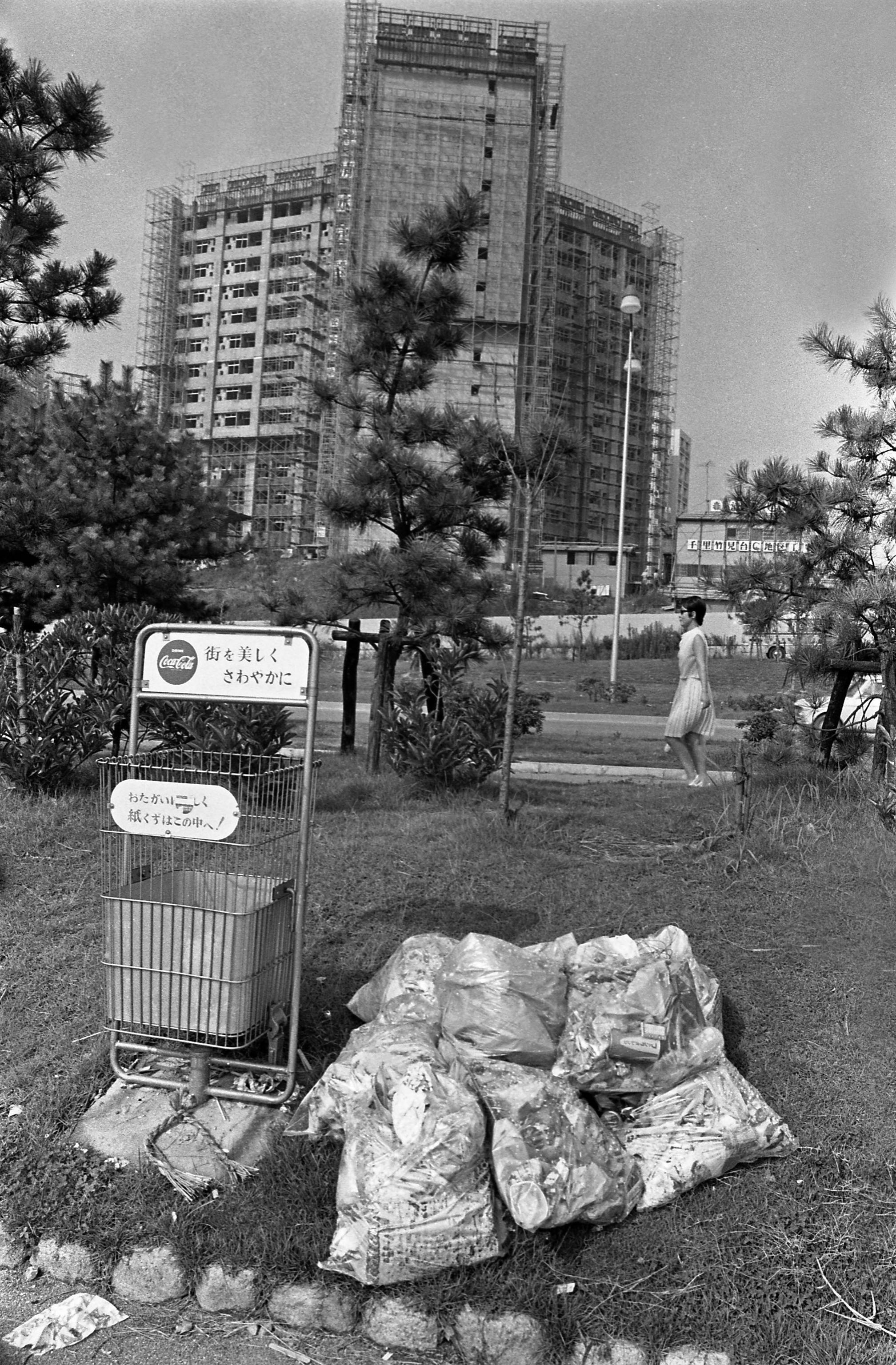 | 内容・説明 | 建設中の竹見台公団スターハウスを背景に、南公園のゴミ。「街を美しくさわやかに」というコカ・コーラの看板が見える。記録では2~3月となっているが、通り過ぎる女性がノースリーブでサングラスをしていることから夏場と推測できる。 |