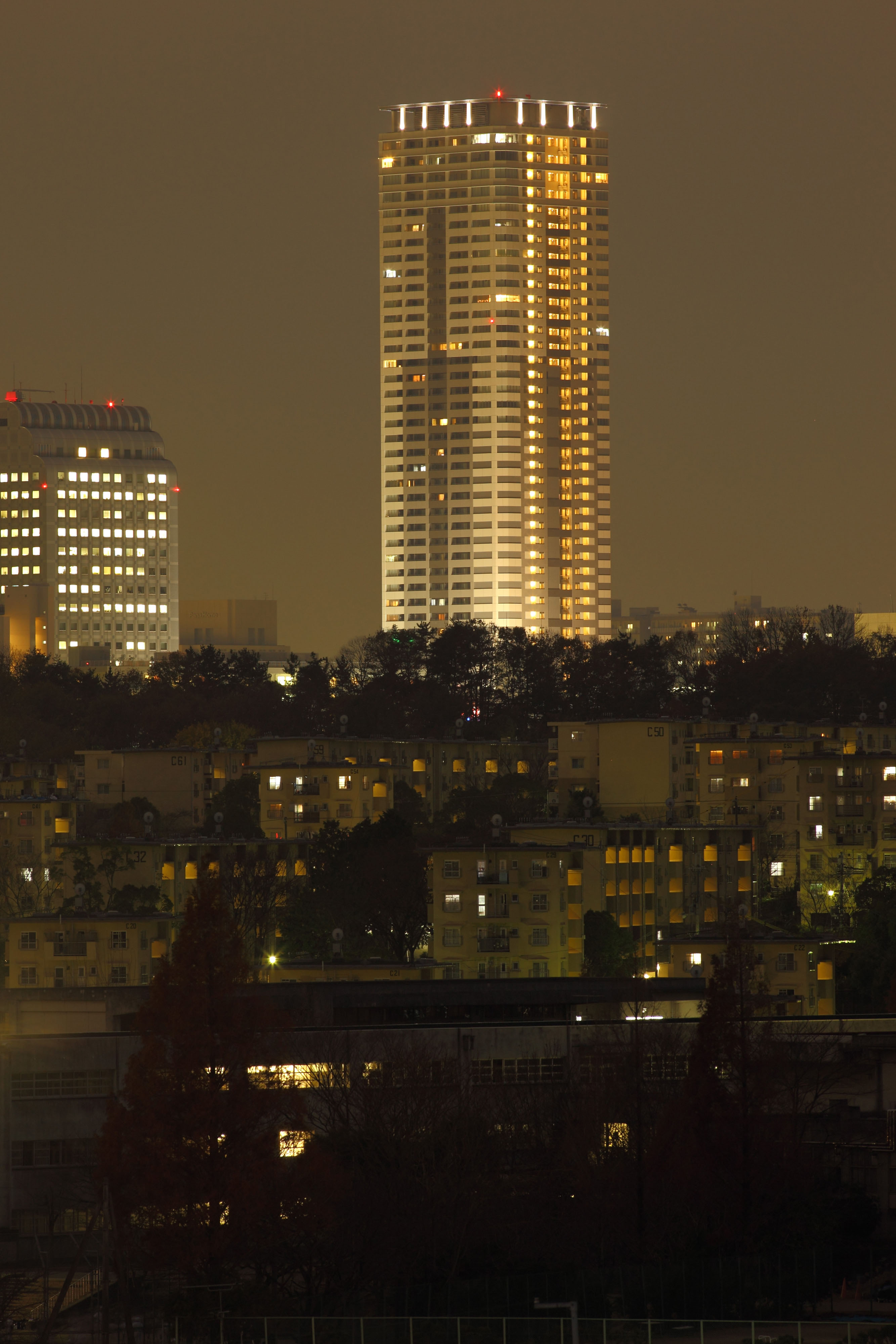 | 内容・説明 | 千里中央のタワーマンションも完成して明かりがともった。手前は青山台のUR団地群。 |