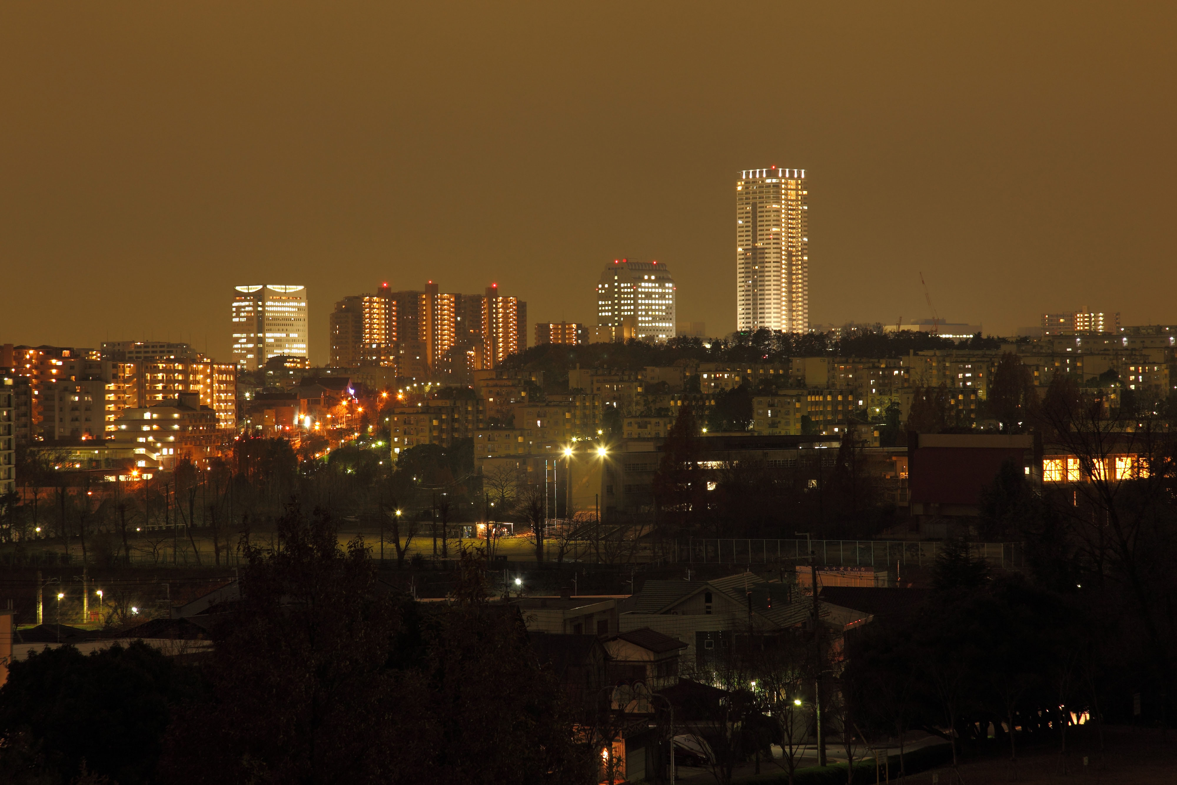 | 内容・説明 | 暮れかかるニュータウンの人工美。新しいマンションと古い団地群が明かりでコントラストを描く。 |