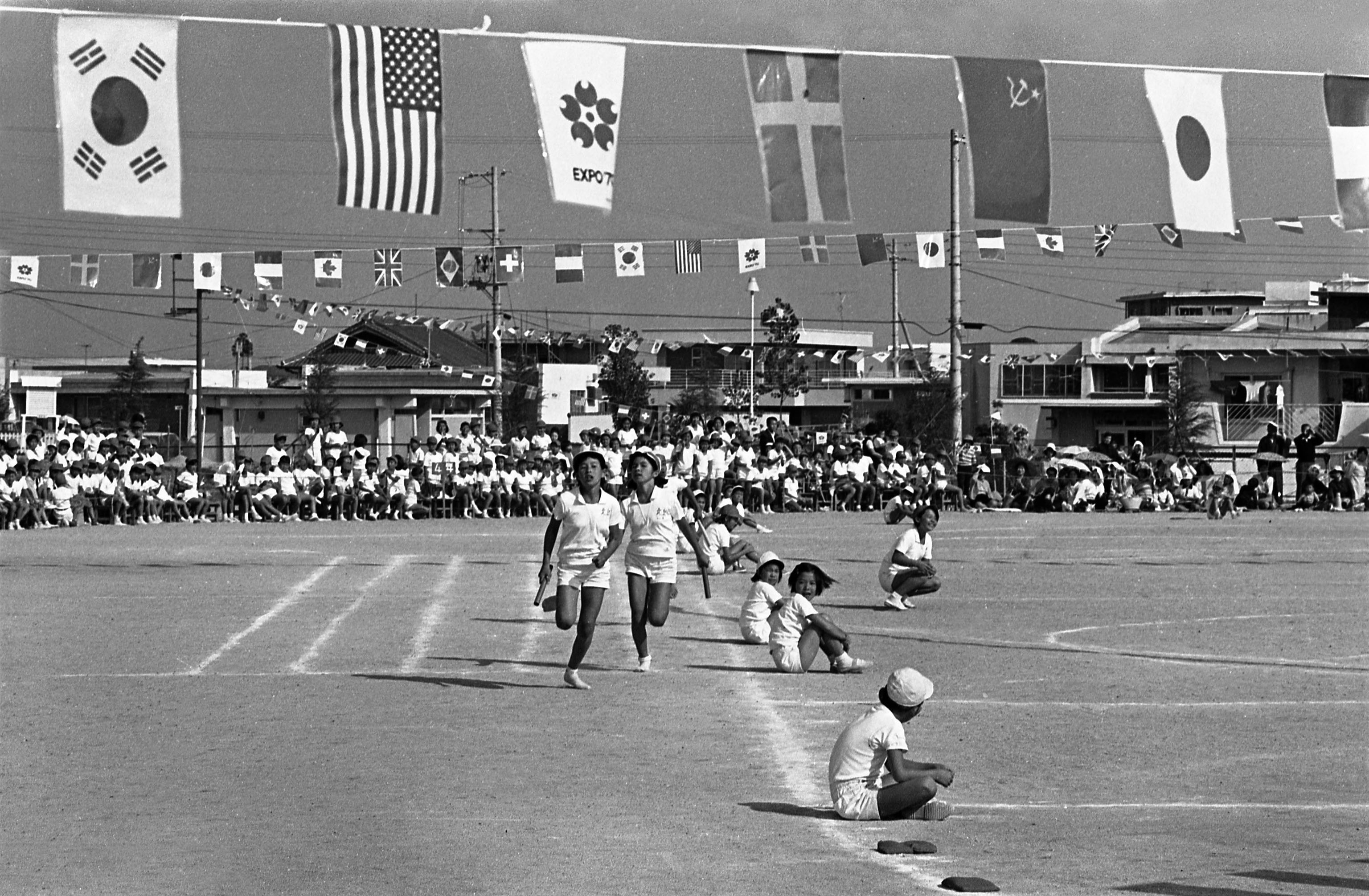 | 内容・説明 | 北丘小学校での「秋の運動会」。万国旗には万博(EXPO'70)のマークも見える。 |
