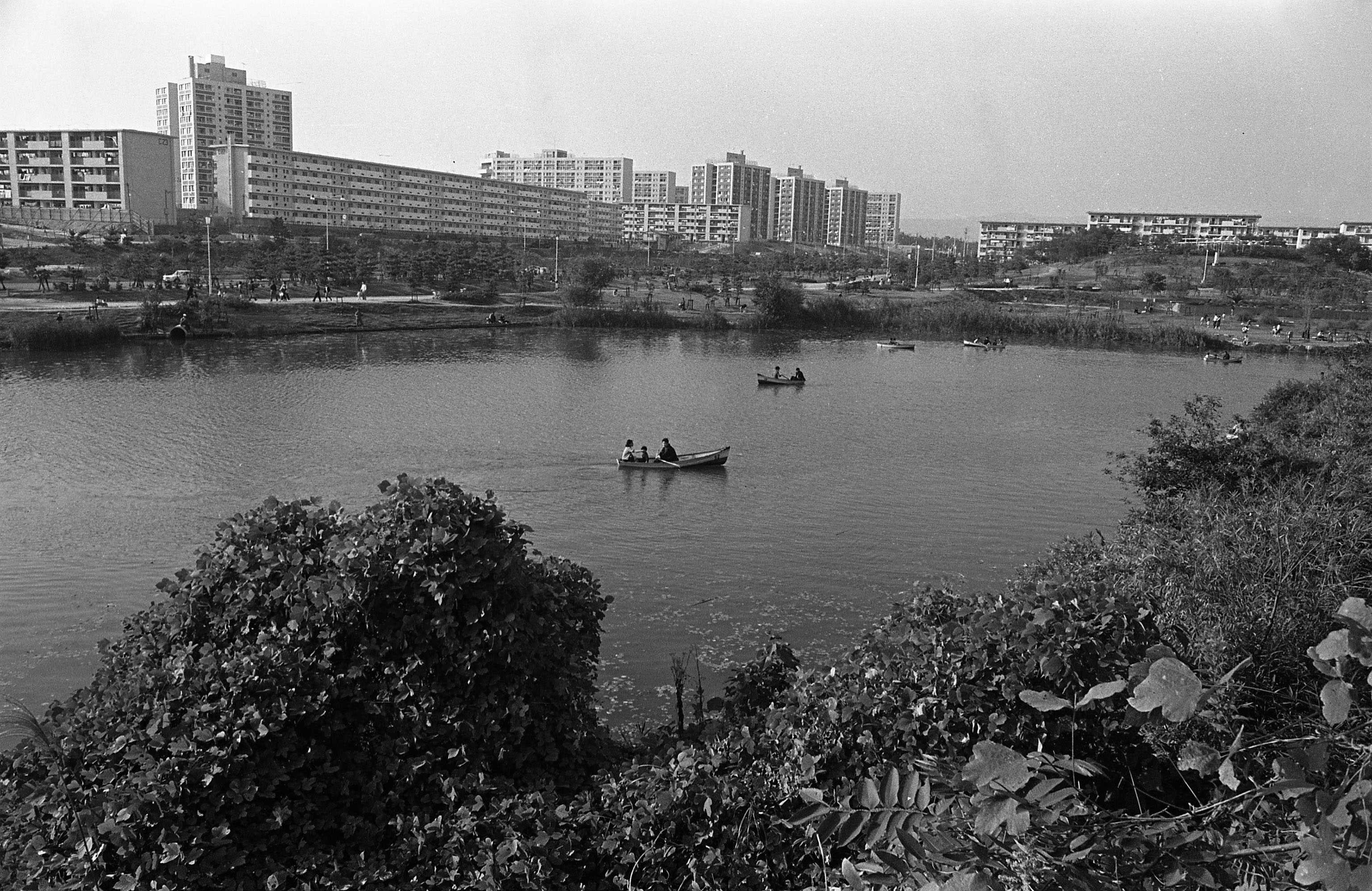 | 内容・説明 | 千里南公園。牛ヶ首池に浮かぶボートを南東側から見ている。 |