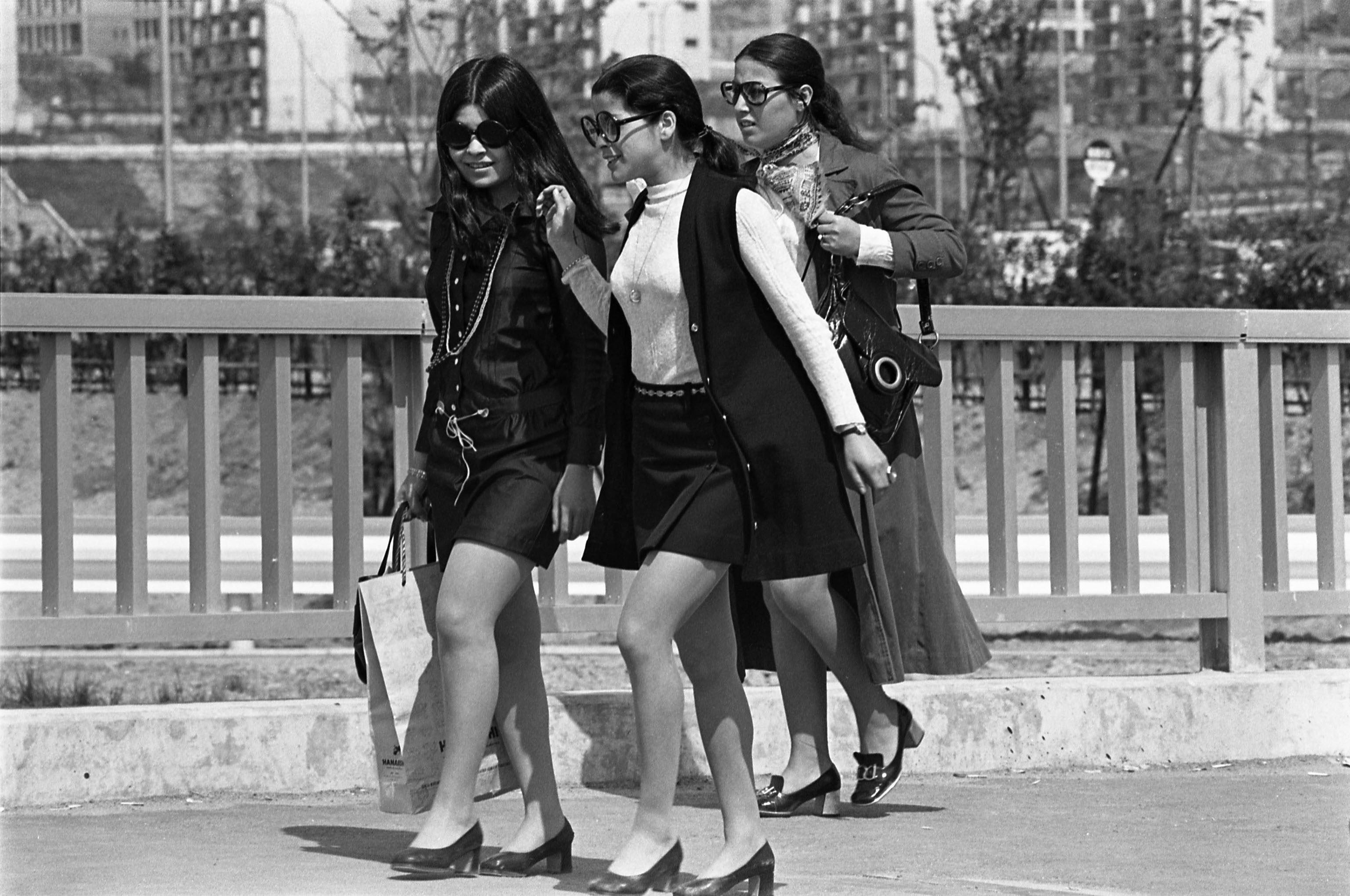 内容・説明 | 北新田橋を渡る外国人。千里中央仮駅に向かう万国博スタッフだろう。背後に新千里西町公社住宅が見える。仮駅に接続するバス停も見えている。 |