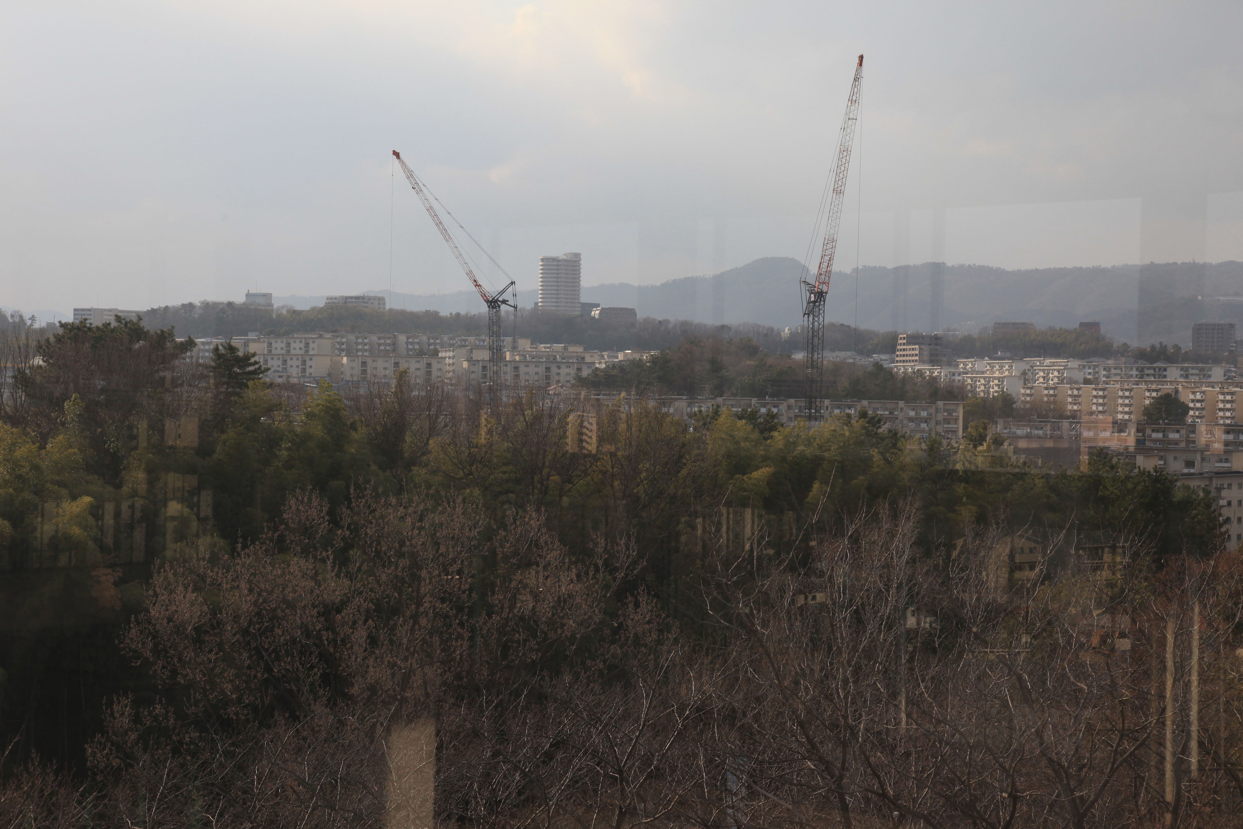 | 内容・説明 | 千里中央公園展望台から北西方向、東町や北町が見えている。団地建替のクレーンが建っている。 |