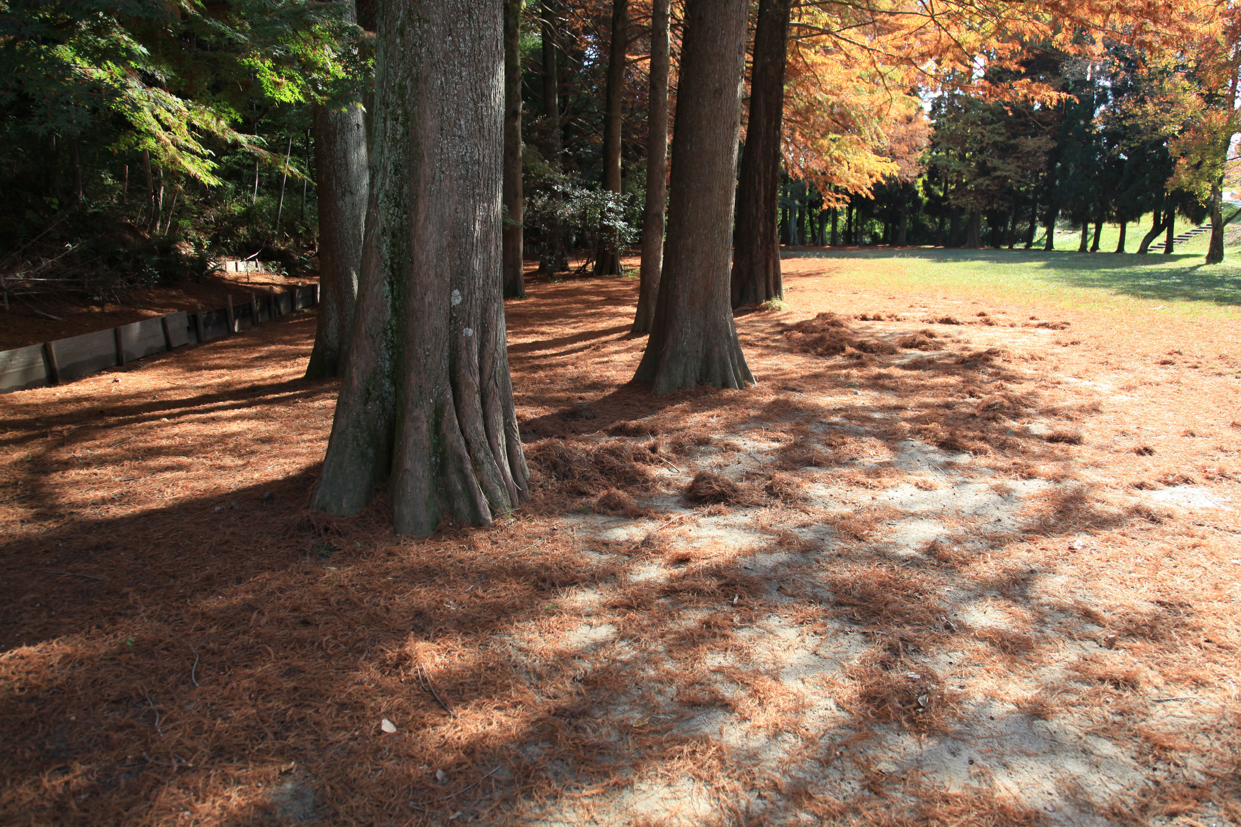 | 内容・説明 | 千里中央公園のメタセコイア。チョコレート色の落葉に木漏れ日が舞う。 |