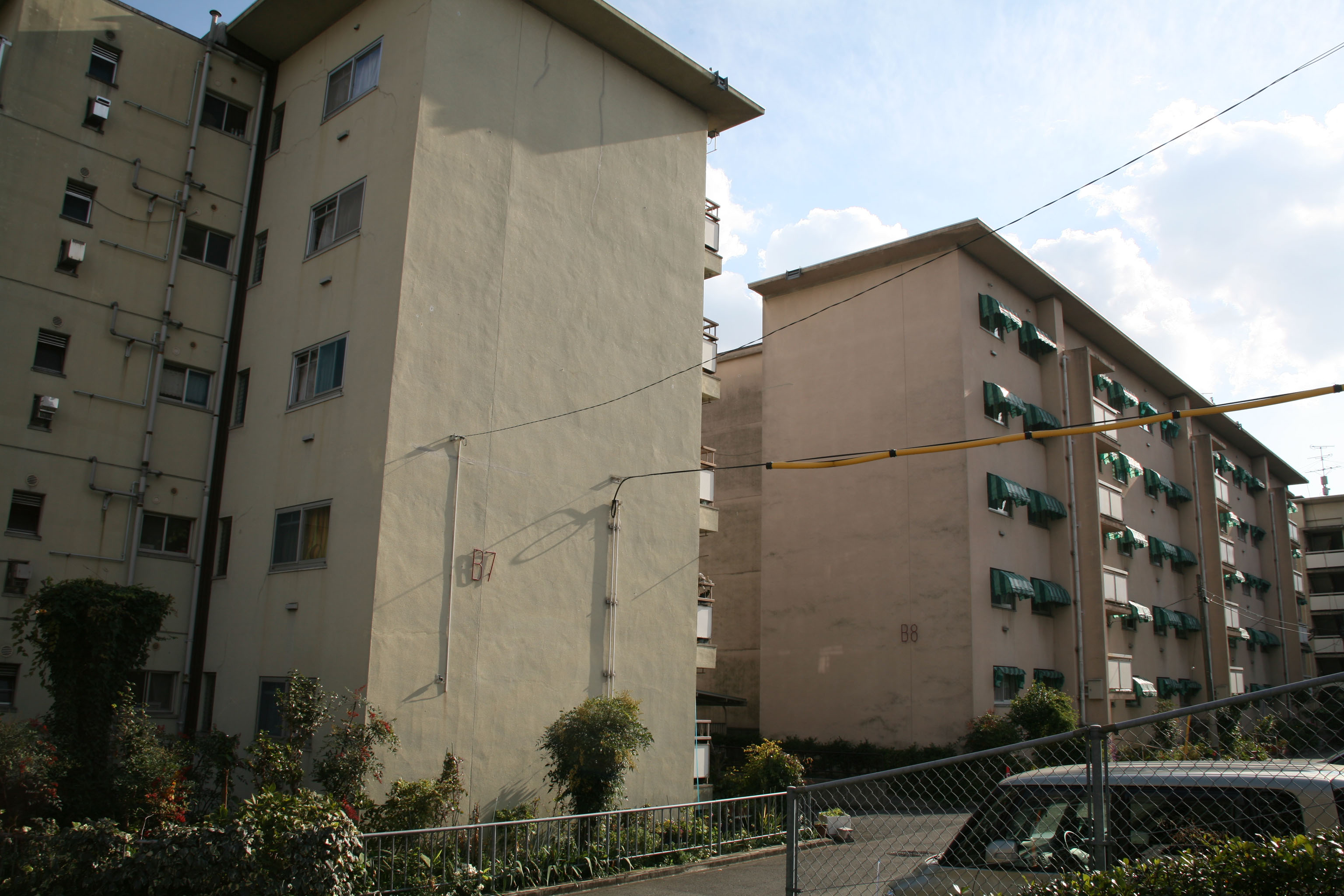 | 内容・説明 | (左)B7、(右)B8棟。この団地では外壁色が棟ごとに塗り分けられていた。 |