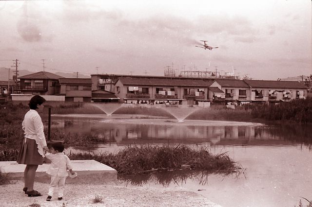 | 内容・説明 | 今はここに武道館と豊島体育館が建っています。 ーーー服部駅西側にある、武道館ひびき・豊島体育館のあたりに、広池は在った。 その昔、囲堤の北西角外側にあり、穂積地区の用水(農業)の要となっていた。 写真の噴水は、農業からも遠くなり、水の汚れがひどく、二基のばっ気筒が吹き上げるものです。住宅地内にある豊洲池・芦田ヶ池・広池・新池に取り付けられたとのこと。 参考:「とよなか歴史・文化財ガイドブック 53頁 豊中市教育委員会 発行」 「広報とよなか 昭和45年11月 228号 7頁(ため池の掃除屋さん)」 |